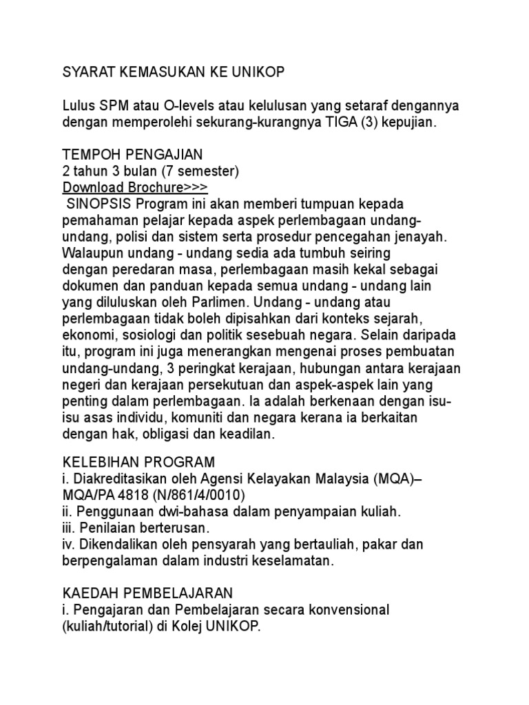 Kolej unikop merupakan sebuah institusi pengajian tinggi (ipt) milik koperasi polis diraja malaysia yang mula ditubuhkan pada tahun 1996. Semakan pendaftaran kolej vokasional 2021 bagi permohonan kv dan smt 2021. Kursus ini juga dikenali sebagai pismp atau program ijazah sarjana. Sila lihat jadual di bawah untuk rujukan syarat kemasukan Unikop college prepares students understanding through principles, theories and current practices in the computer science.